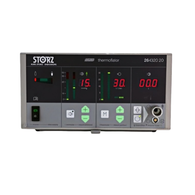 storz史托斯 26432020 (2) 气腹机常见故障: 压力讨高报感无法开机无法进气报警代码、气压不足,无气体输出,压力不稳等 气腹机的常见故障及处理措施: 气腹机显示压力过高:手术台上穿刺套针连接注气管道的开关未打开
